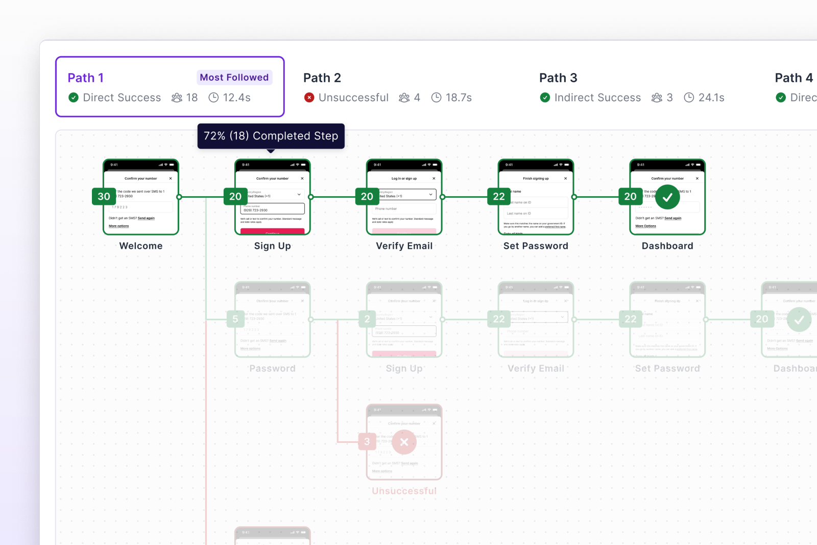 Track exactly how AI users navigate your prototype. Identify drop-offs and where users get stuck.