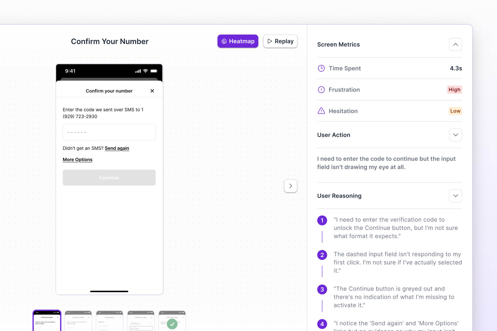 No recruiting, no scheduling, no waiting. Run AI users through your Figma prototype instantly.